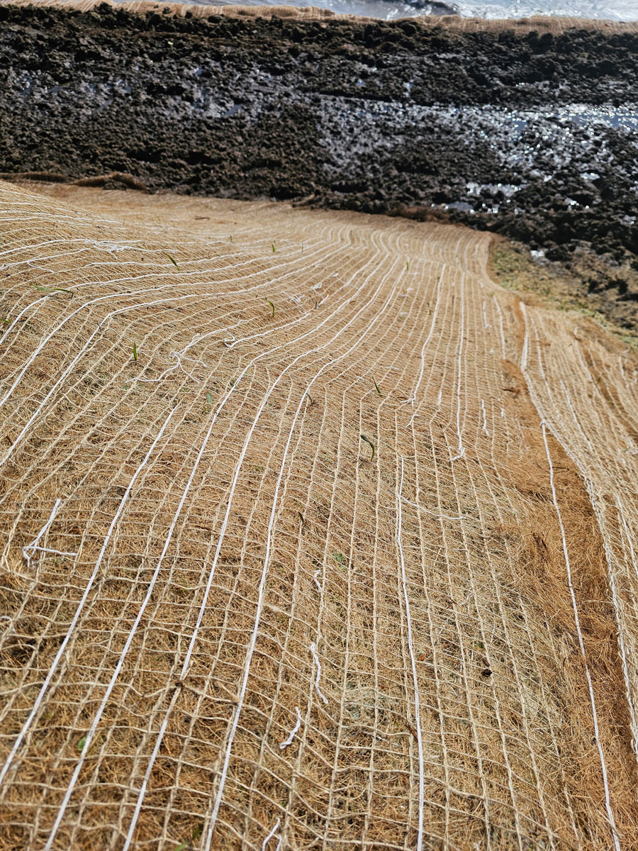 • Erosion Control Matting – Application of biodegradable or synthetic blankets to hold soil in place on slopes until permanent vegetation is established.