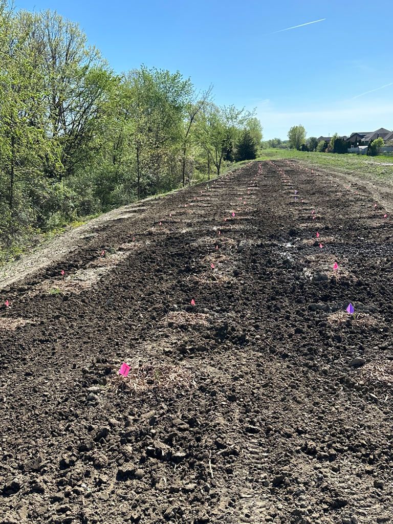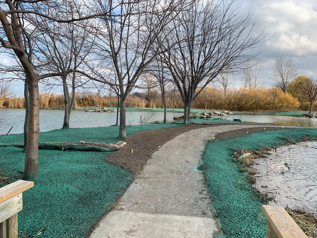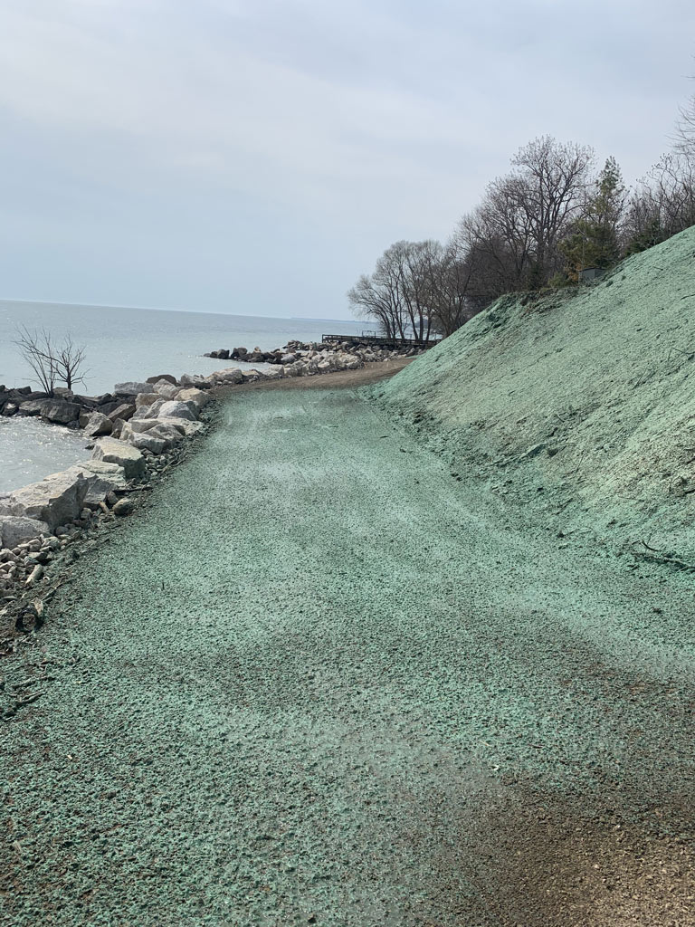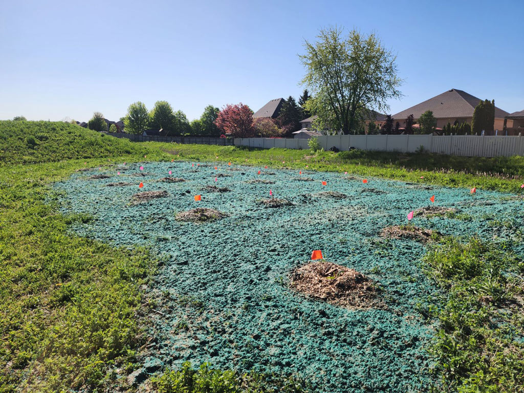 - Erosion Control Matting – Application of biodegradable or synthetic blankets to hold soil in place on slopes until permanent vegetation is established.